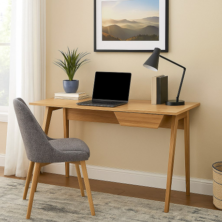 Письменный стол Heavens разработан в лаконичном скандинавском стиле. Каркас стола изготовлен из массива дерева, столешница и выдвижной ящик из мдф в шпоне дерева. Ящик с направляющей скрытого монтажа с доводчиком. Стол затонирован в натуральный цвет (дуб или американский орех, в зависимости от выбранной Вами отделки).