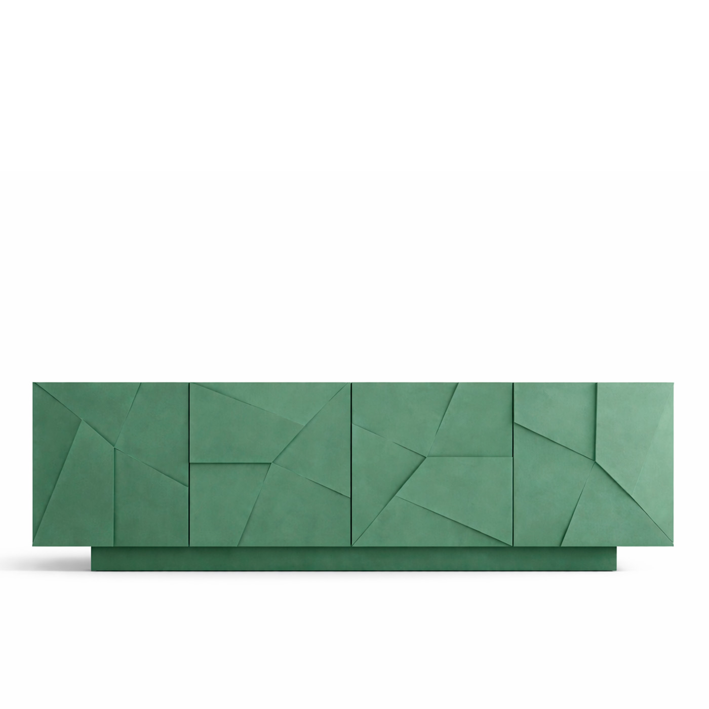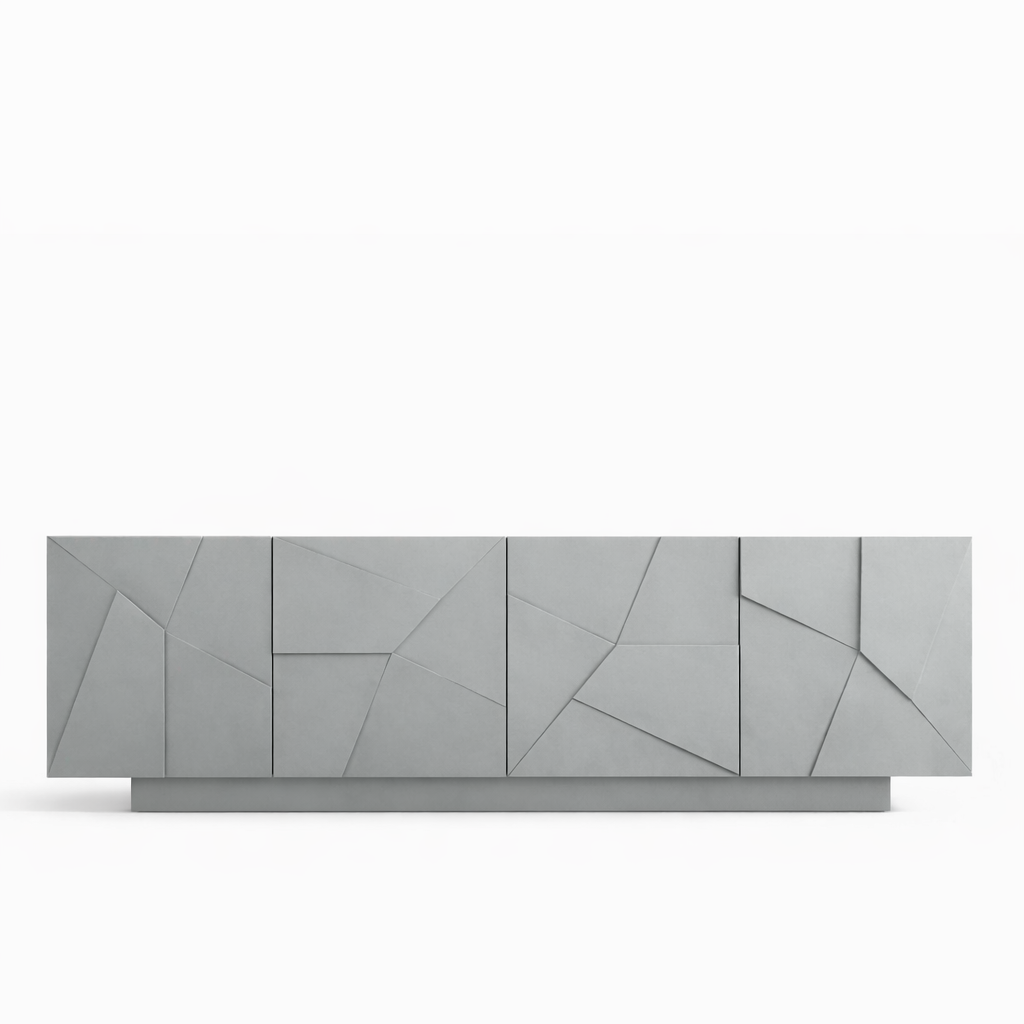 Рисунок фасадов создается с помощью фрезеровки. Ломаные грани разных форм и размеров создают интересный объемный узор, который смотрится единым полотном на всей плоскости фасадов.