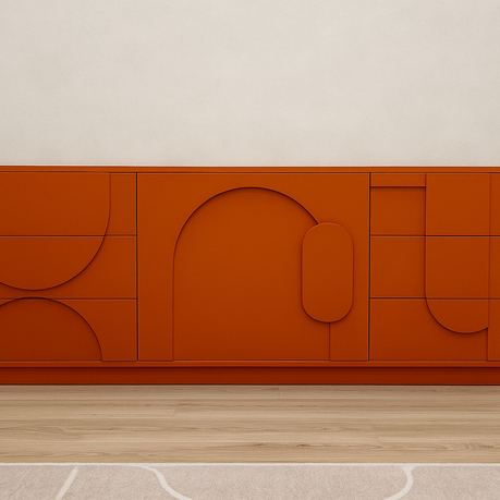 Фасады комода выполнены вручную с объемными элементами.