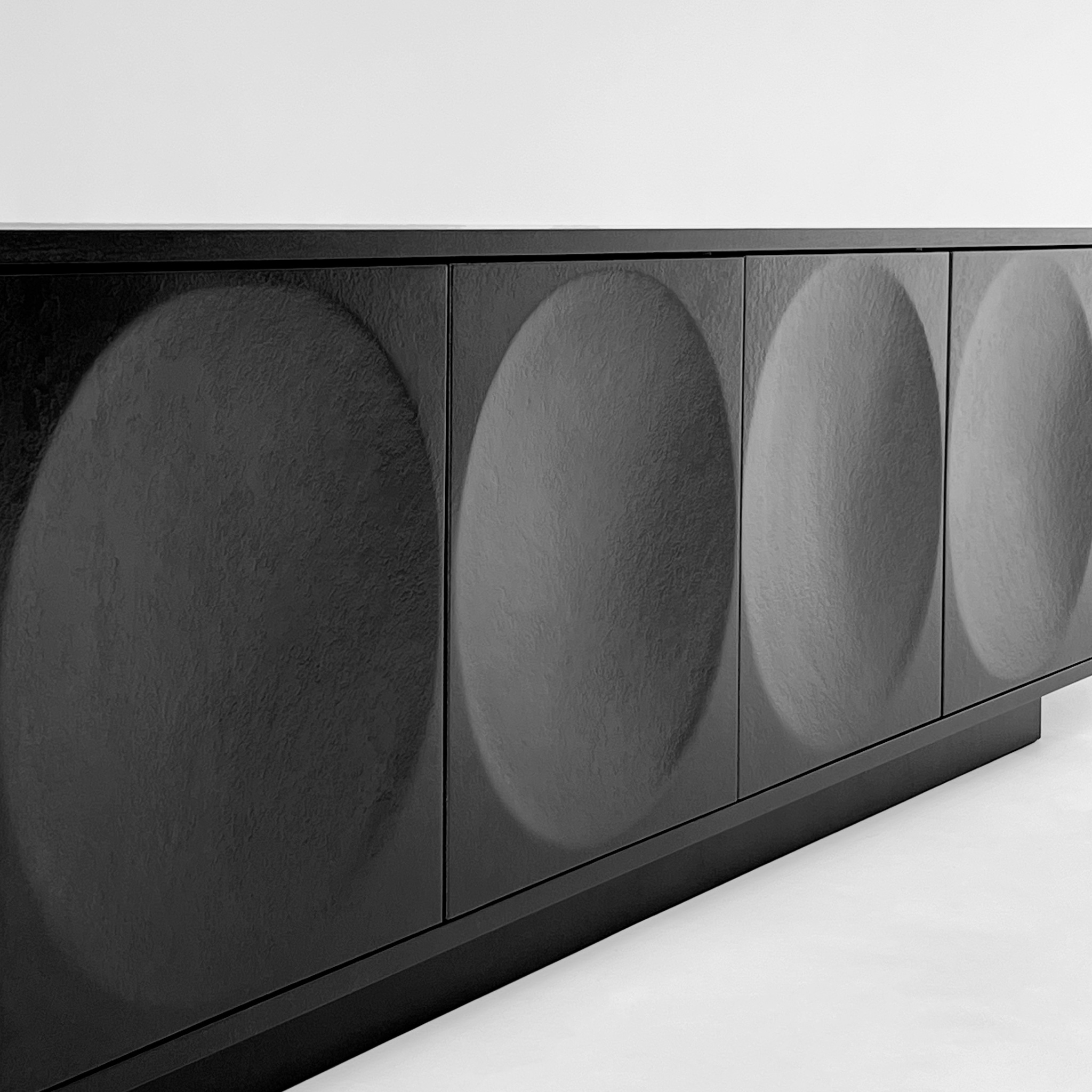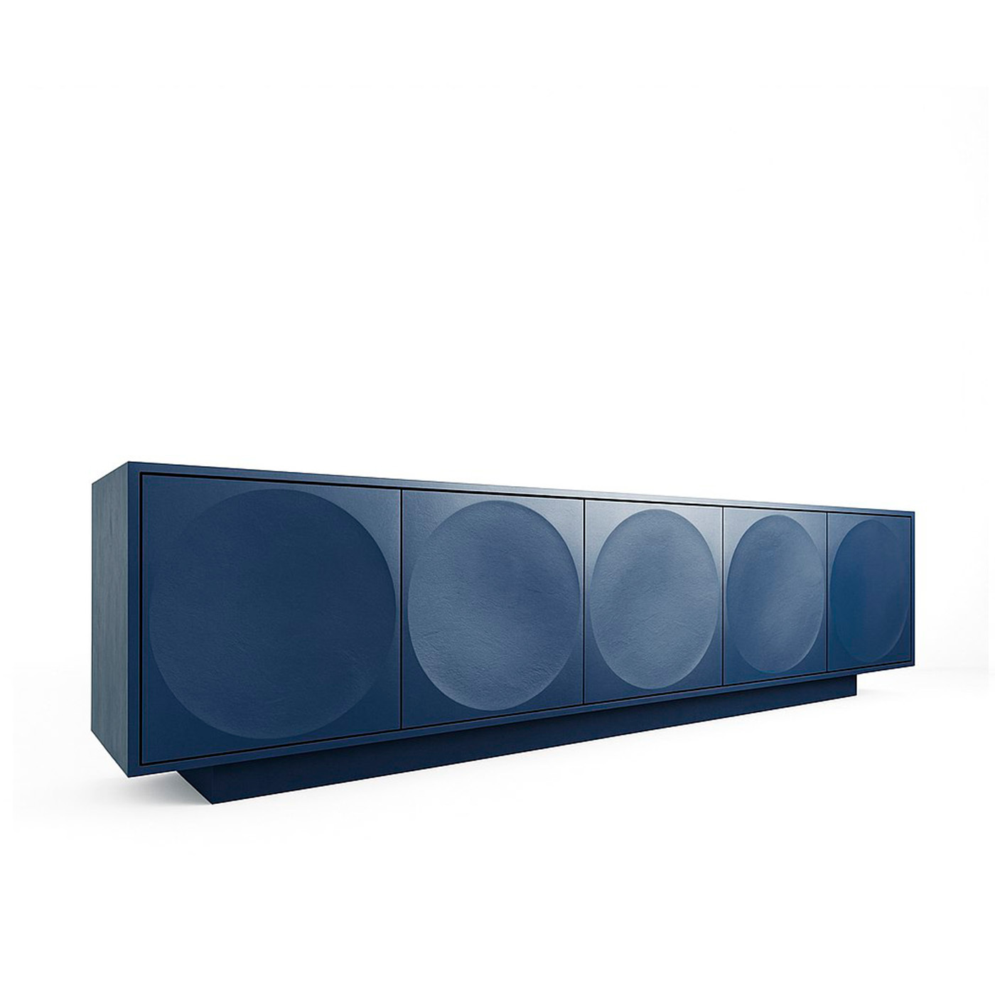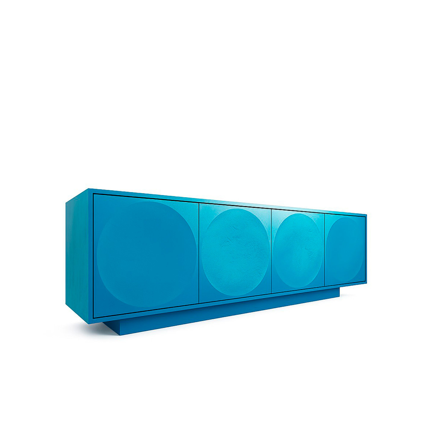 Корпус, фасады и внутреннее наполнение шкафов выполнены из МДФ с декоративным покрытием. Отделка представляет собой сложный процесс, включающий семь этапов нанесения. Она придает мебели небольшую фактуру и легкий мерцающий эффект. Завершающим штрихом служит нанесение трех слоев лака.