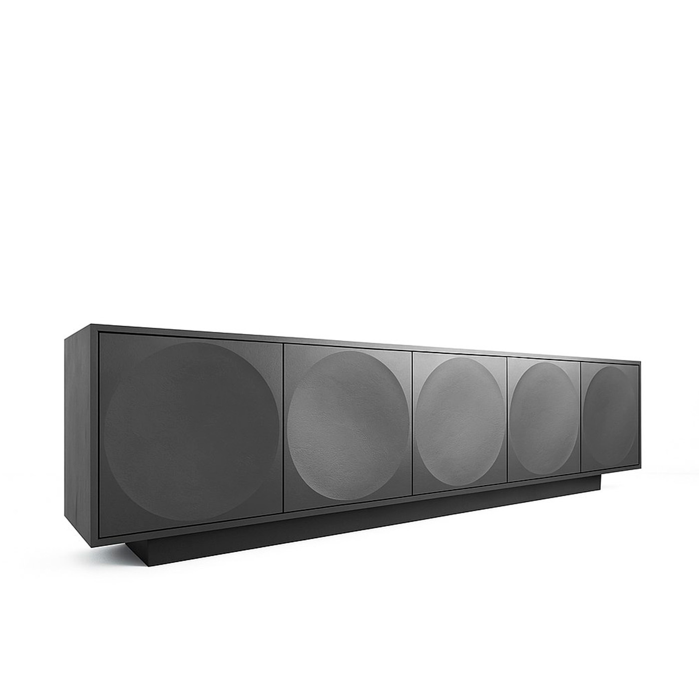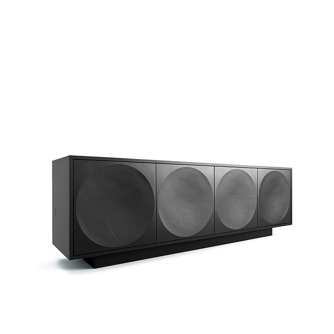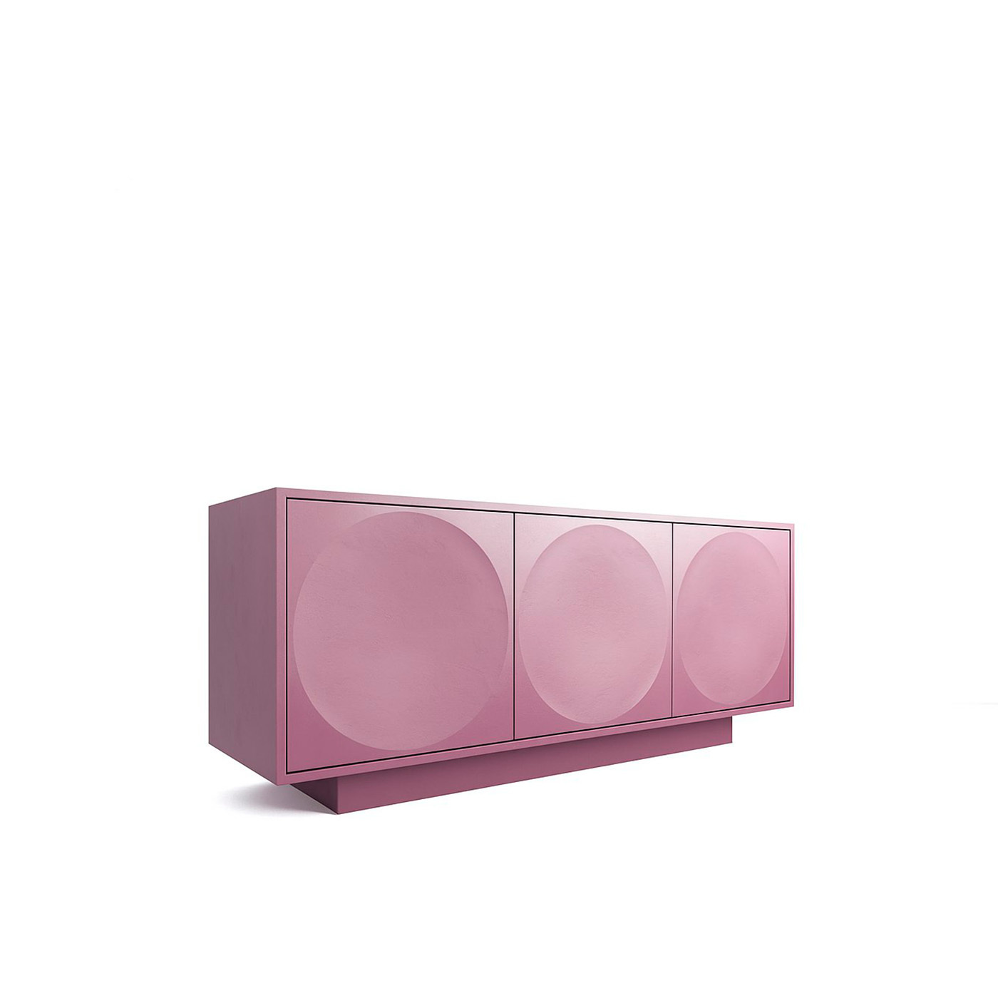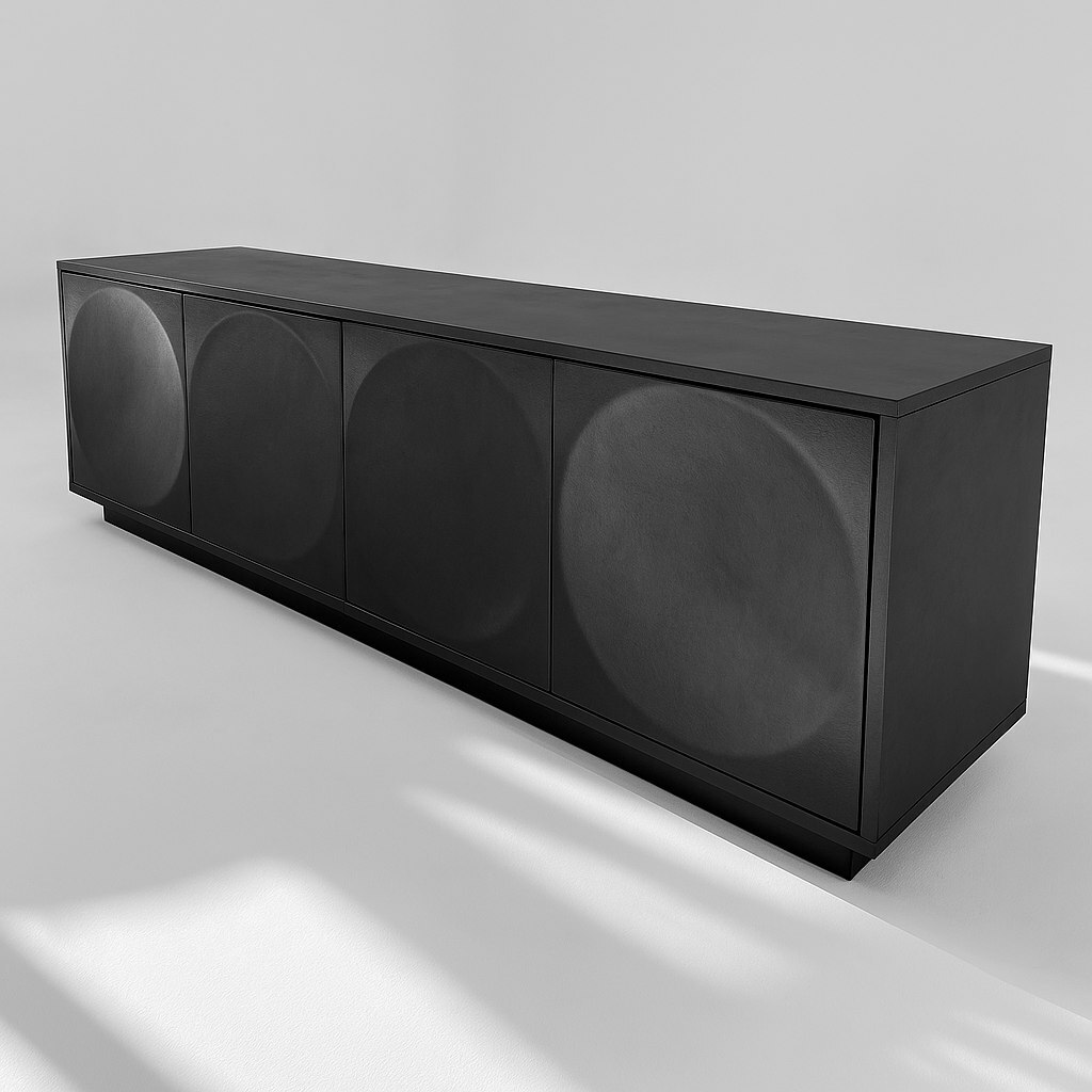 Корпус, фасады и внутреннее наполнение шкафов выполнены из МДФ с декоративным покрытием. Отделка представляет собой сложный процесс, включающий семь этапов нанесения. Она придает мебели небольшую фактуру и легкий мерцающий эффект. Завершающим штрихом служит нанесение трех слоев лака.