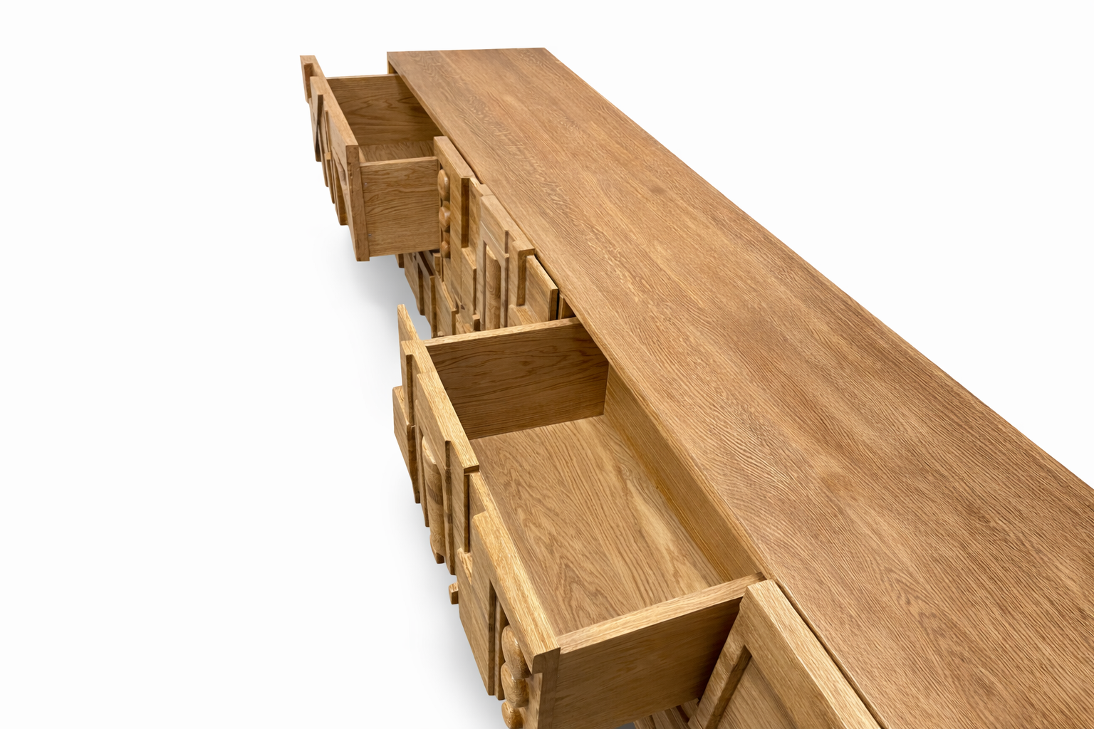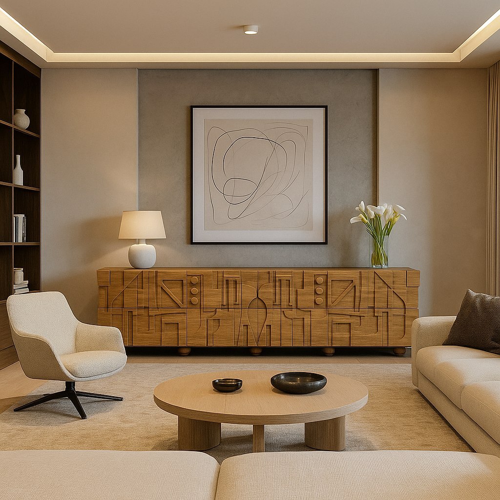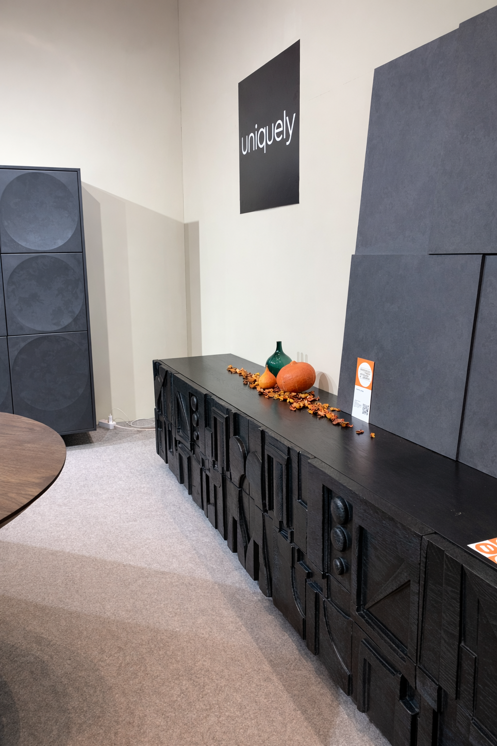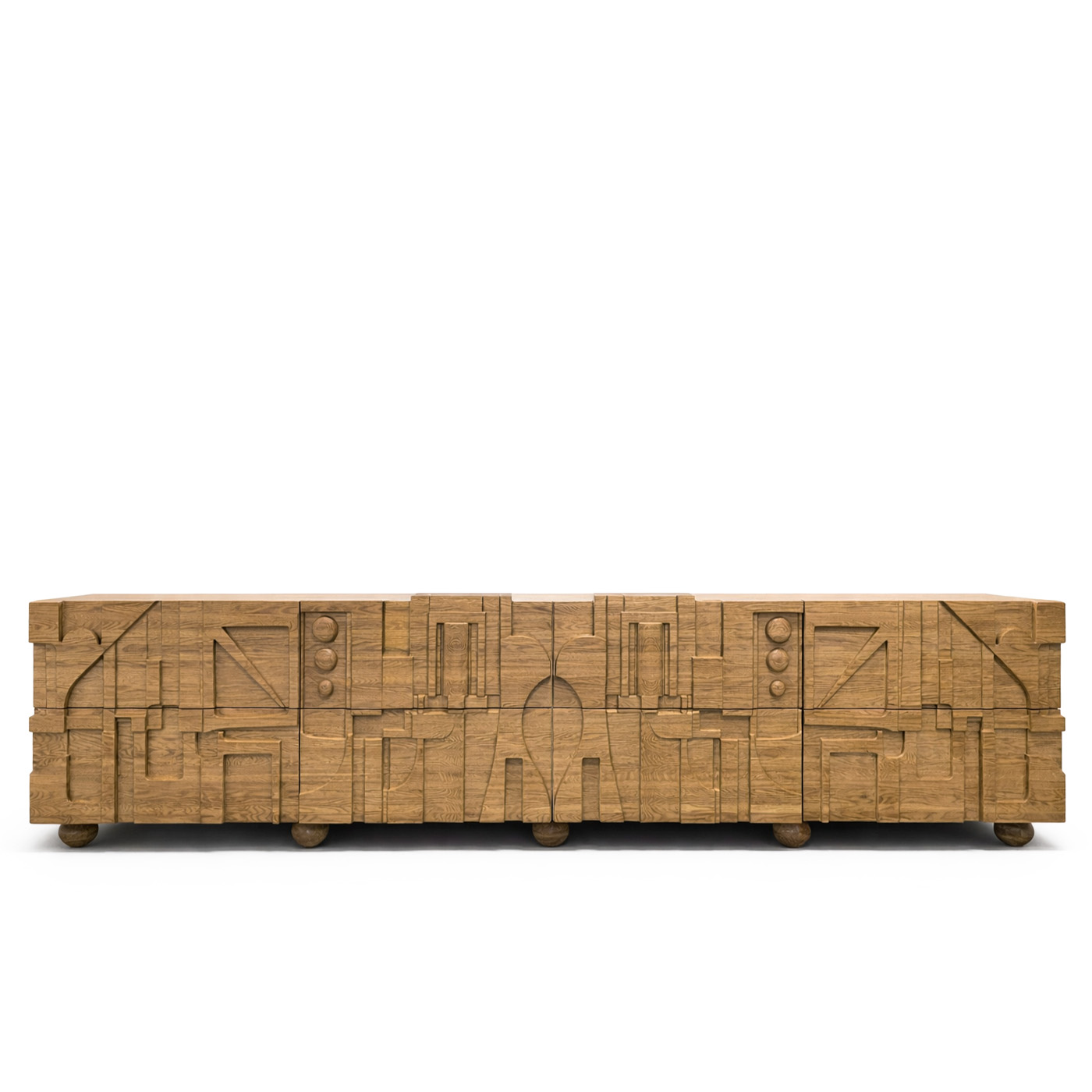 Комод Tribe привлекает внимание выразительным геометрическим узором на фасаде. Корпус выполнен из массива дерева, а внутреннее наполнение — из шпонированного МДФ.