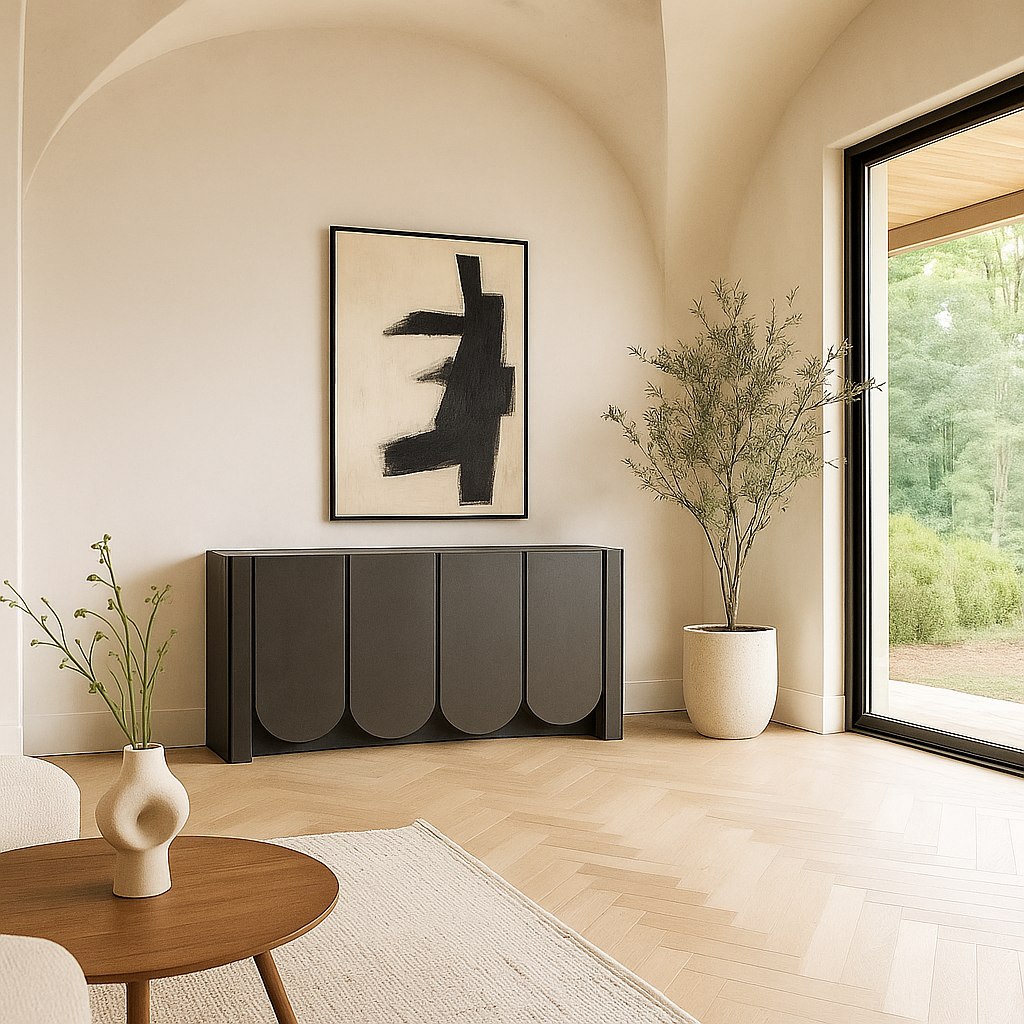 Комод «Аист» отличается минималистичным дизайном. Его задняя стенка полностью повторяет узор фасада. Внутри комода четыре ящика и фиксированная полка.