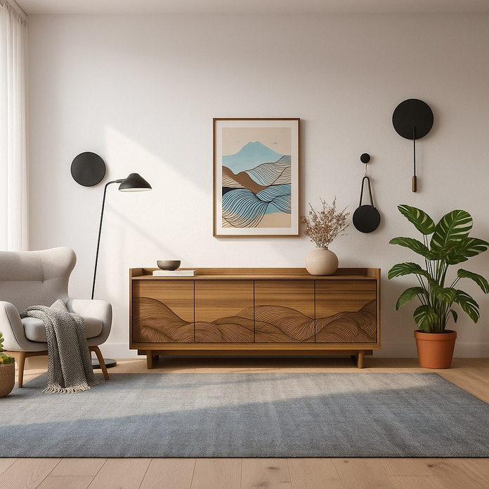 Эта мебель станет отличным дополнением к любому интерьеру. Её фасады, выполненные из шпонированного МДФ Valchromat, украшены гравировкой, что придаёт им изысканный и стильный вид. Три слоя лака надёжно защищают мебель от внешних воздействий, гарантируя её долговечность.