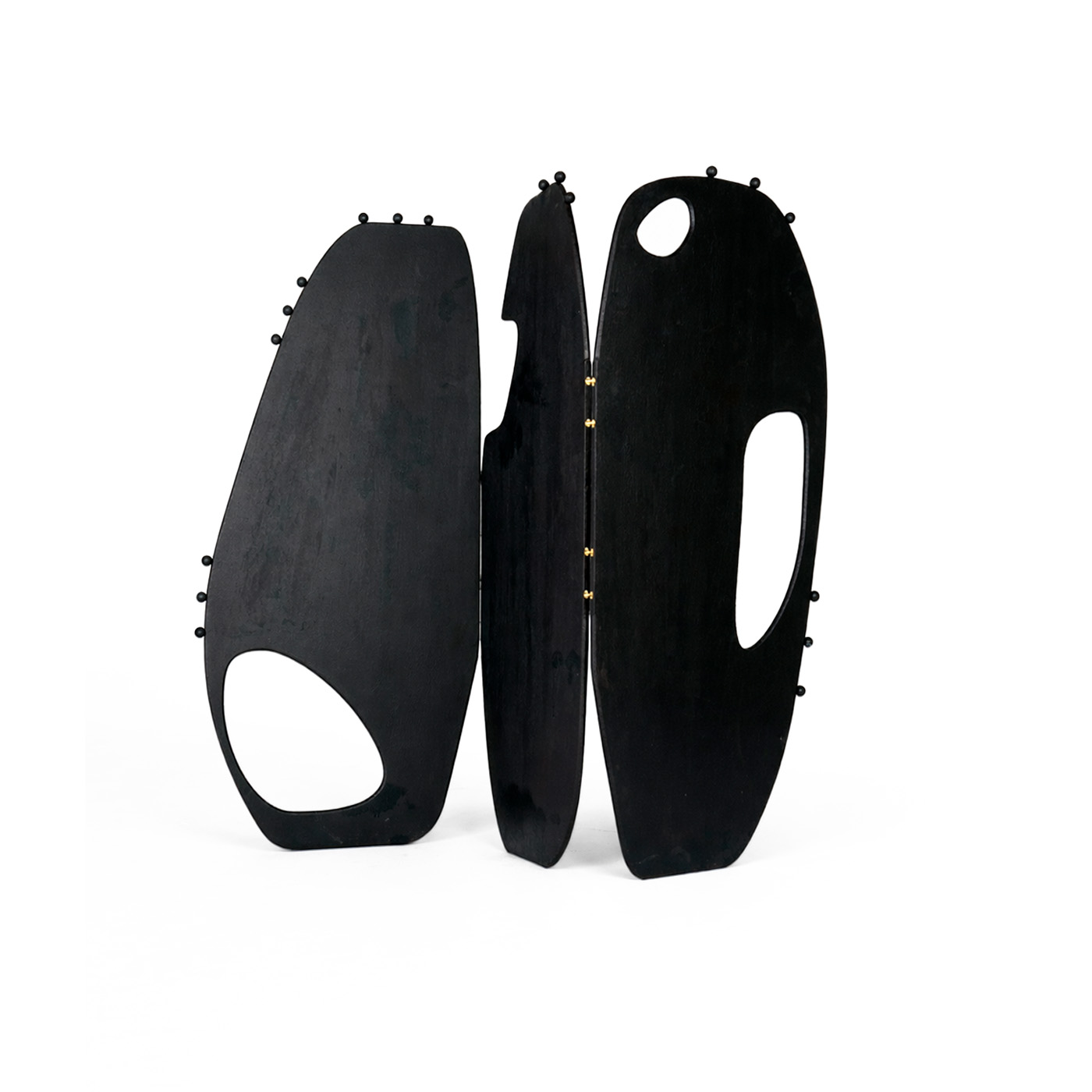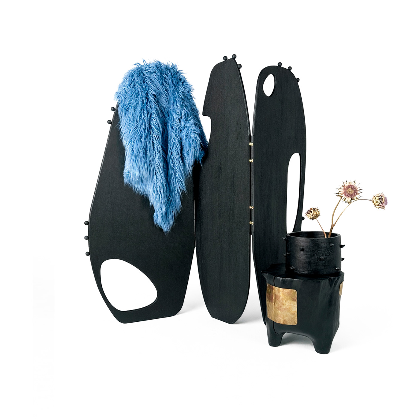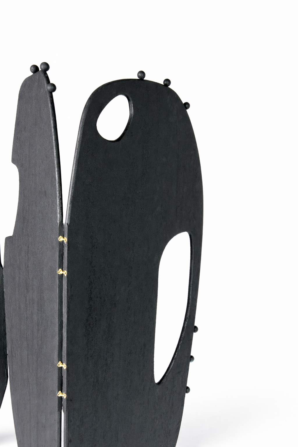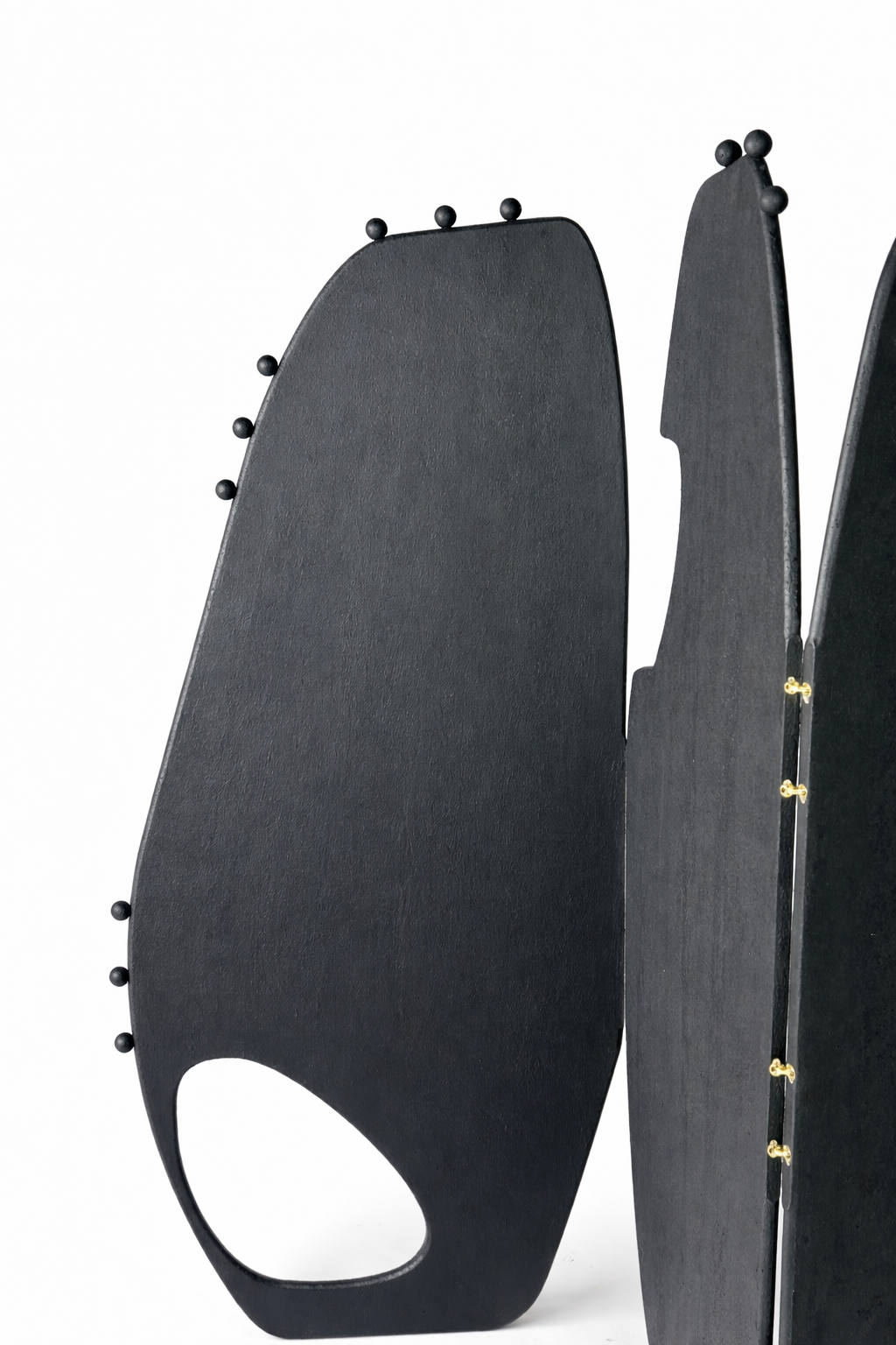 Ширма покрыта специальным составом: смешанный песок микроцемента и колерованный лак. В разложенном виде она имеет длину 2200 мм и высоту 1800 мм, изготовлена из 18-миллиметрового МДФ.