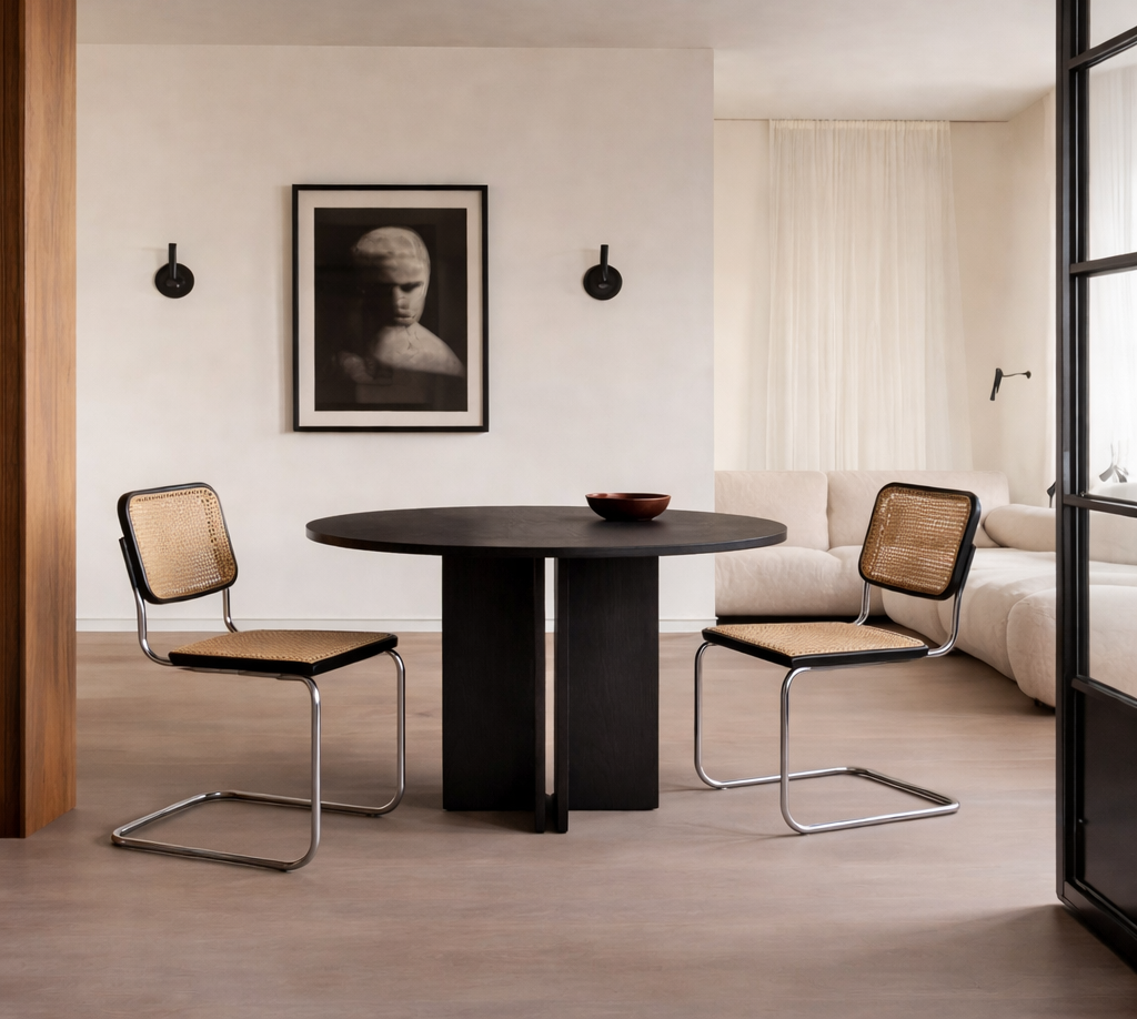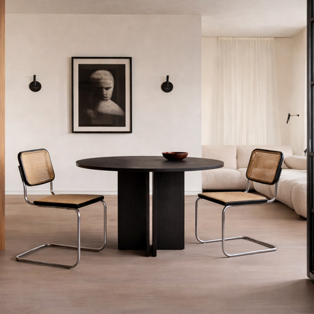 Стол отличается продуманной формой и визуальной динамикой, которая помогает создать гармоничное пространство вокруг обеденной зоны. Такой дизайн позволяет Kivi эффективно сочетаться с различными предметами мебели, поддерживая эстетическую целостность интерьера.