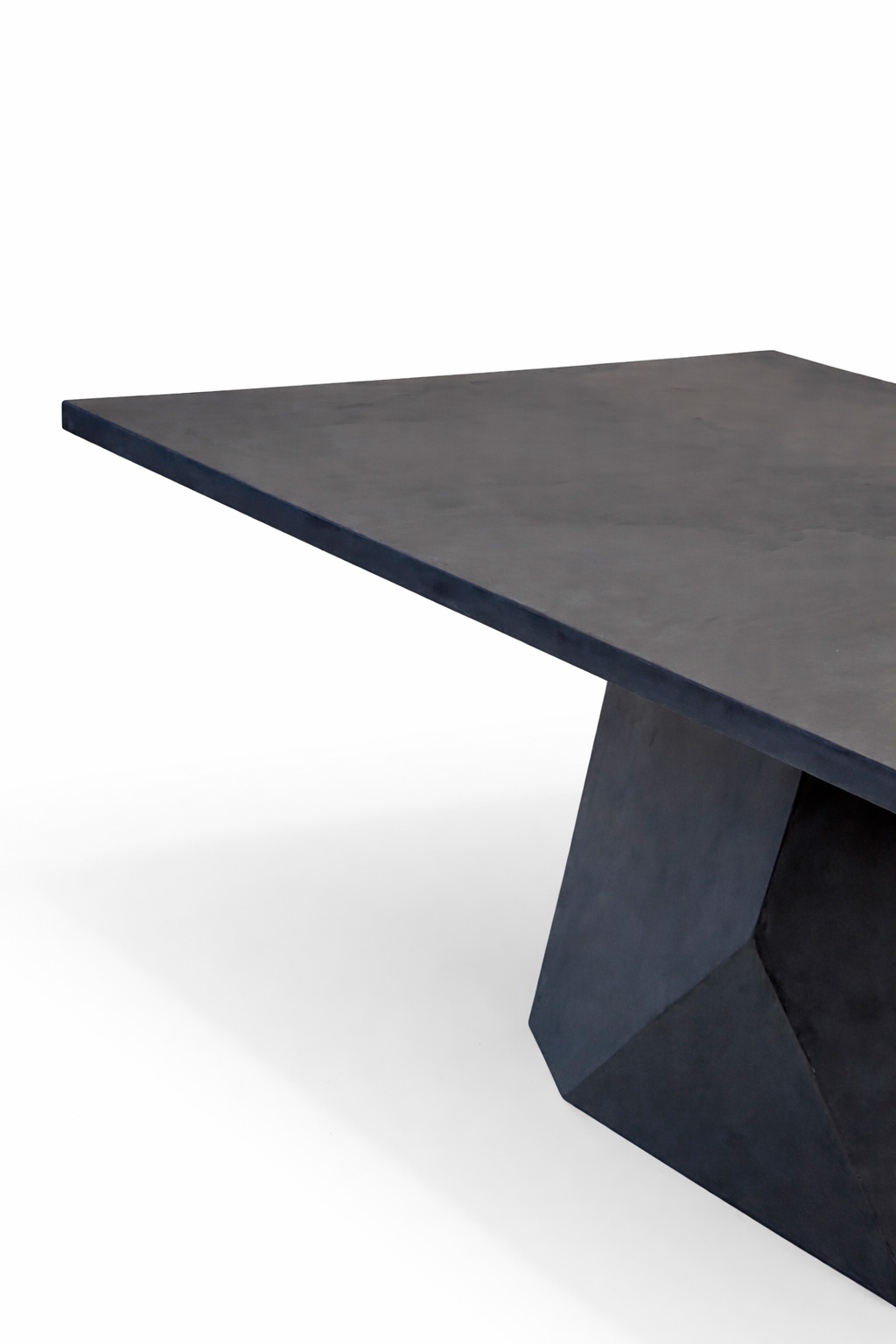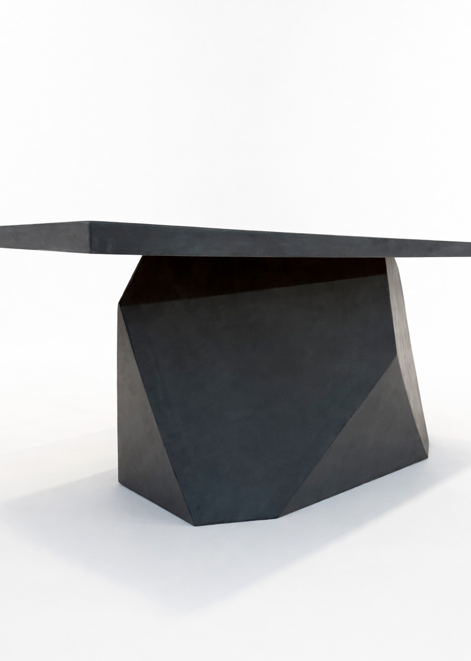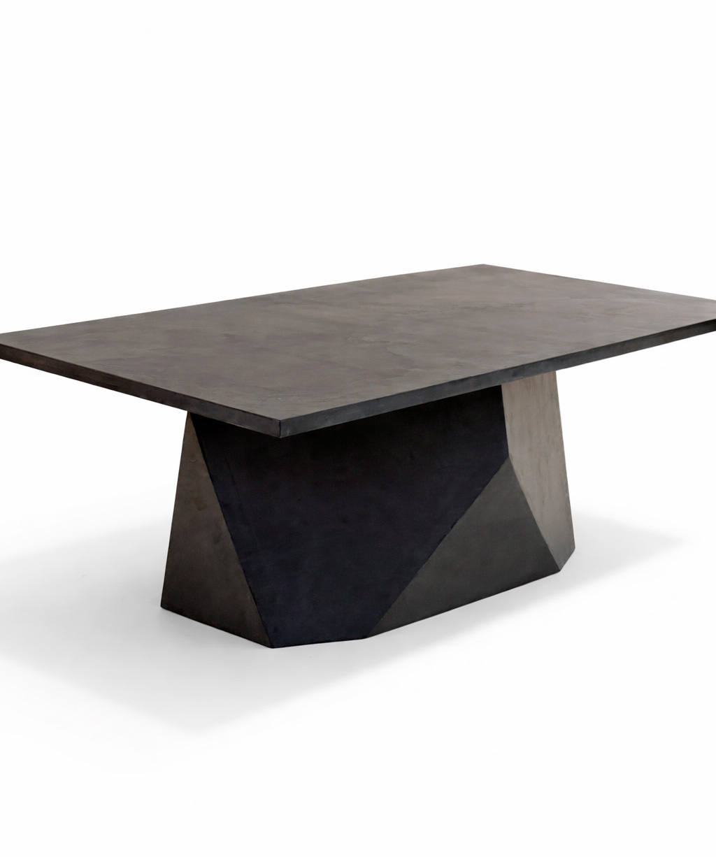 Стол Stone изготовлен целиком из микроцемента, включая столешницу и основание. Такое решение формирует цельную архитектурную форму без визуальных разрывов, подчёркивая современный и индустриальный характер модели. Микроцемент придаёт столу плотную текстуру, строгий внешний вид и ощущение монументальности.