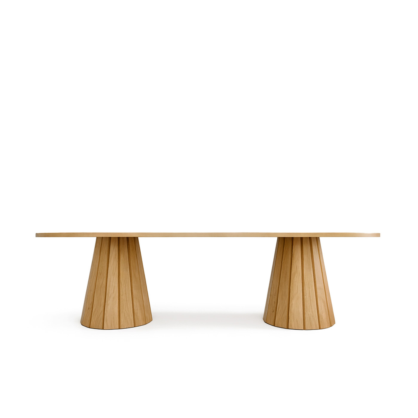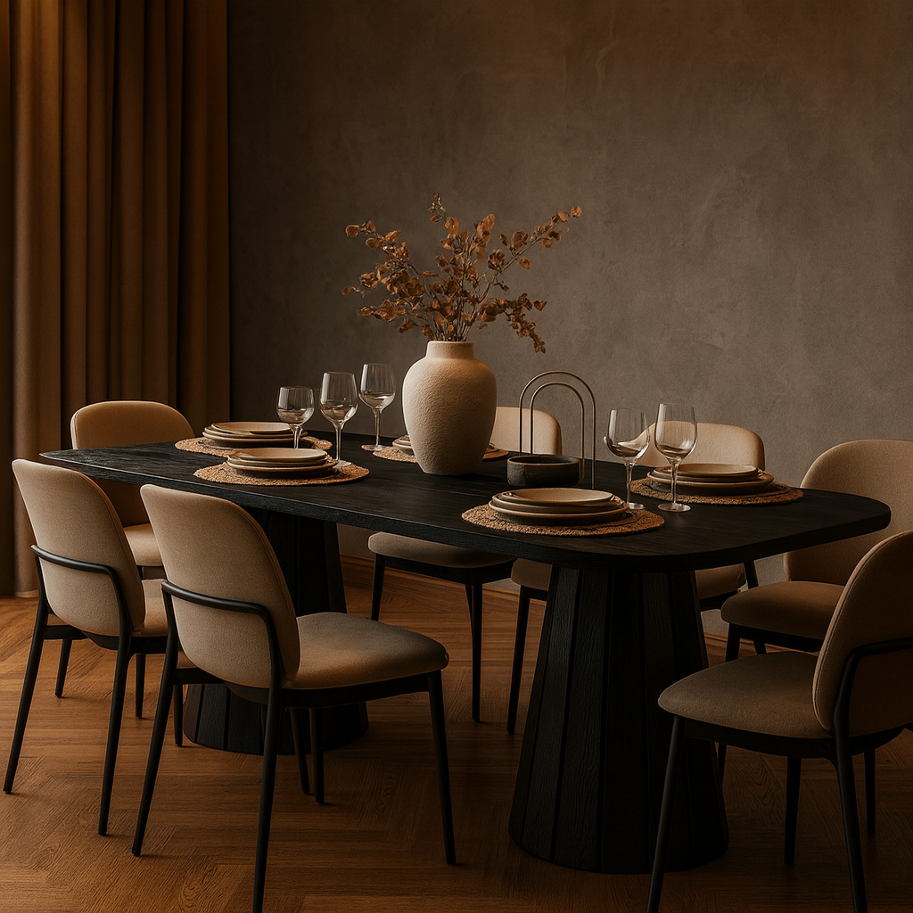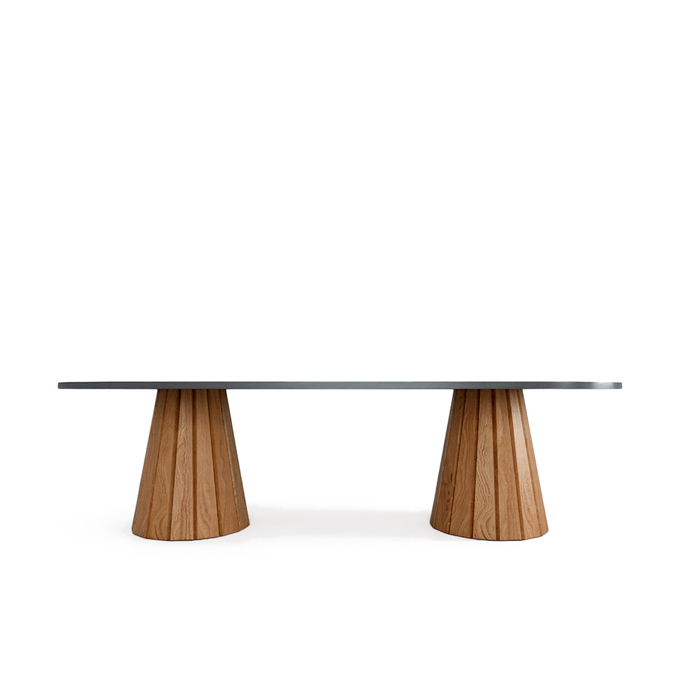 Обеденный стол Tulip создан с использованием искусственного интеллекта. Подстолье изготовлено из массива дуба. Столешница может быть выполнена из шпонированной дубом фанеры толщиной 3 см или из МДФ, покрытого прочным микроцементом. Это делает стол устойчивым к агрессивным условиям.