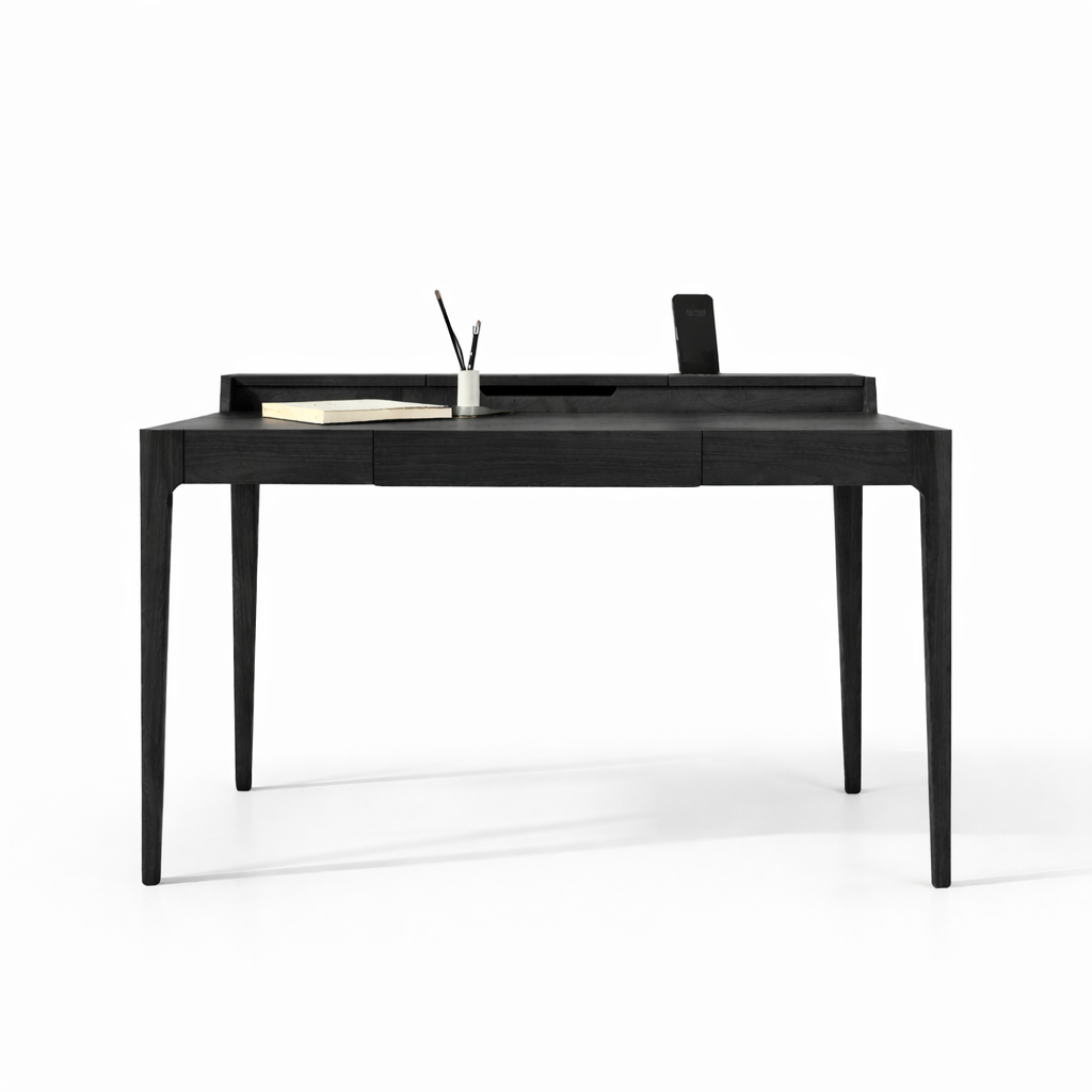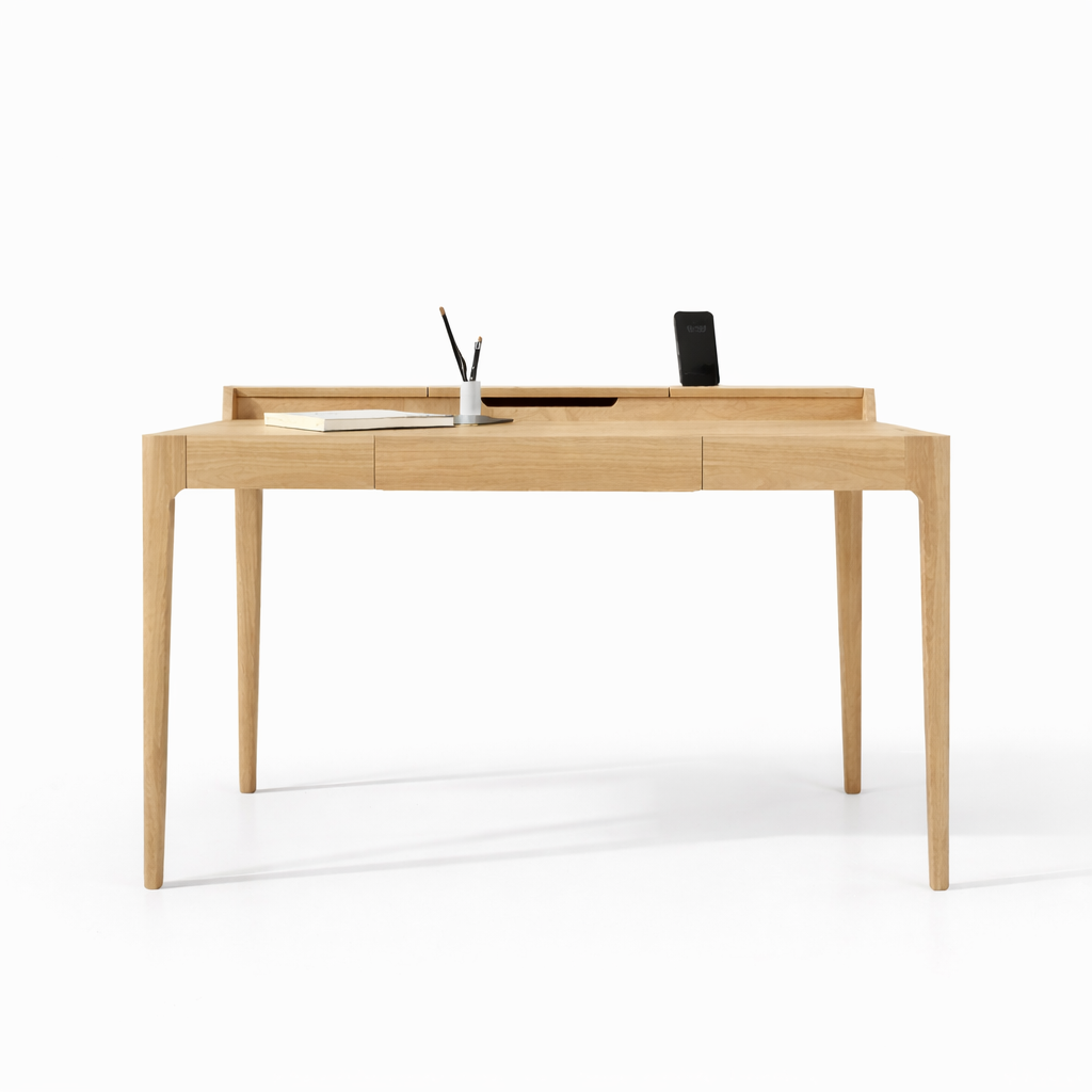 Письменный стол Supernova изготовлен из массива дерева. Его столешница выполнена из шпонированного МДФ. Стол имеет один выдвижных отсека и специальные прорези для проводов.