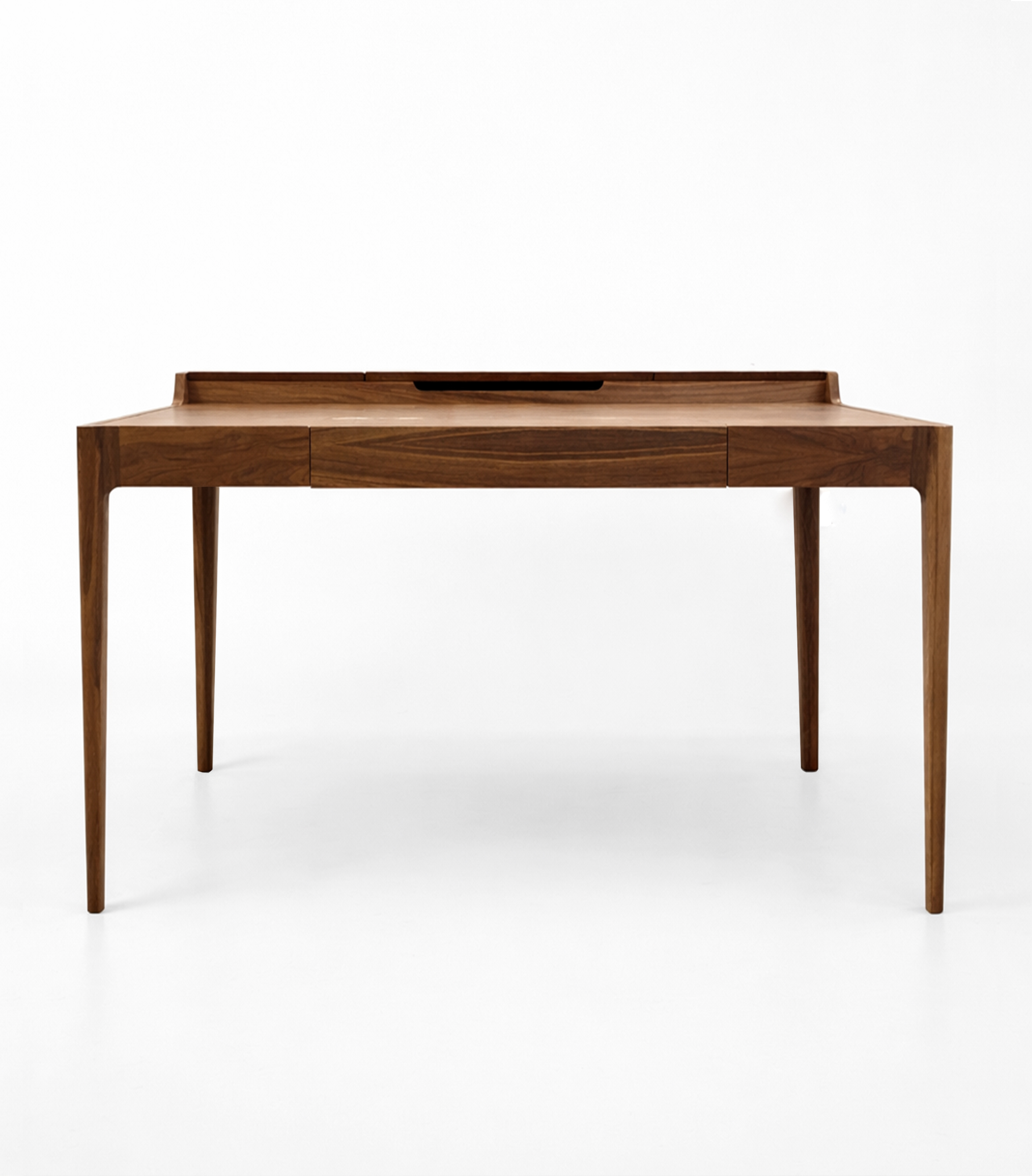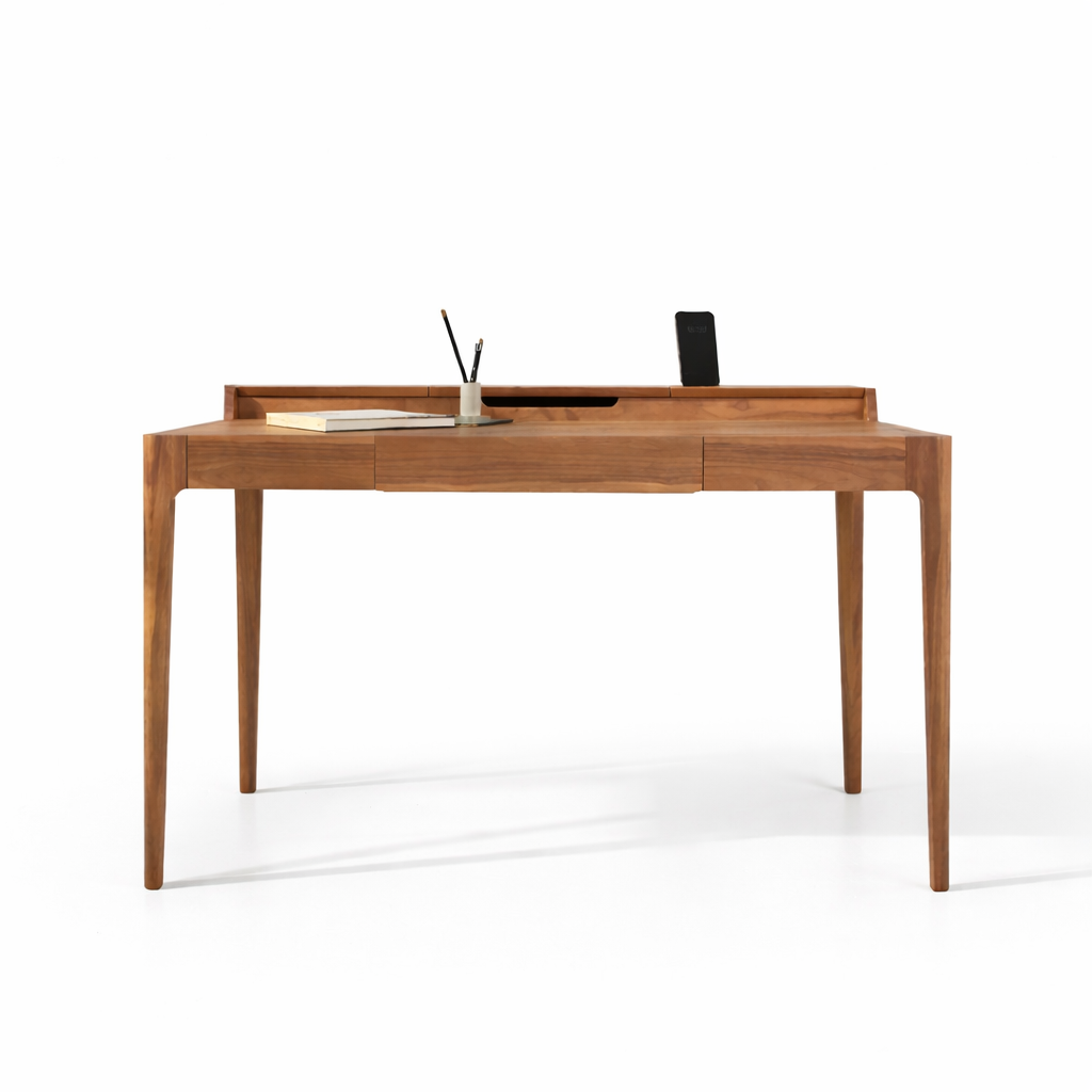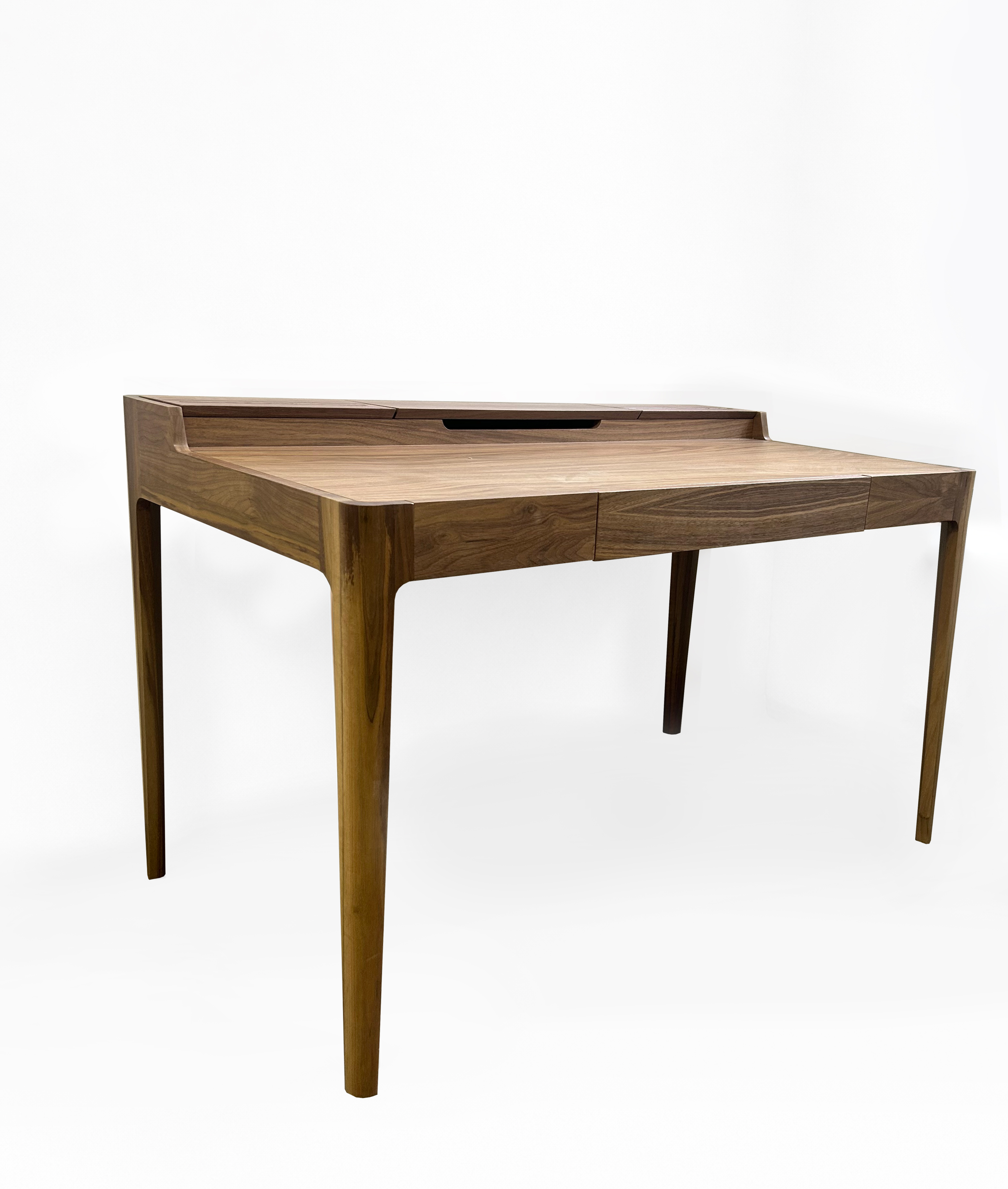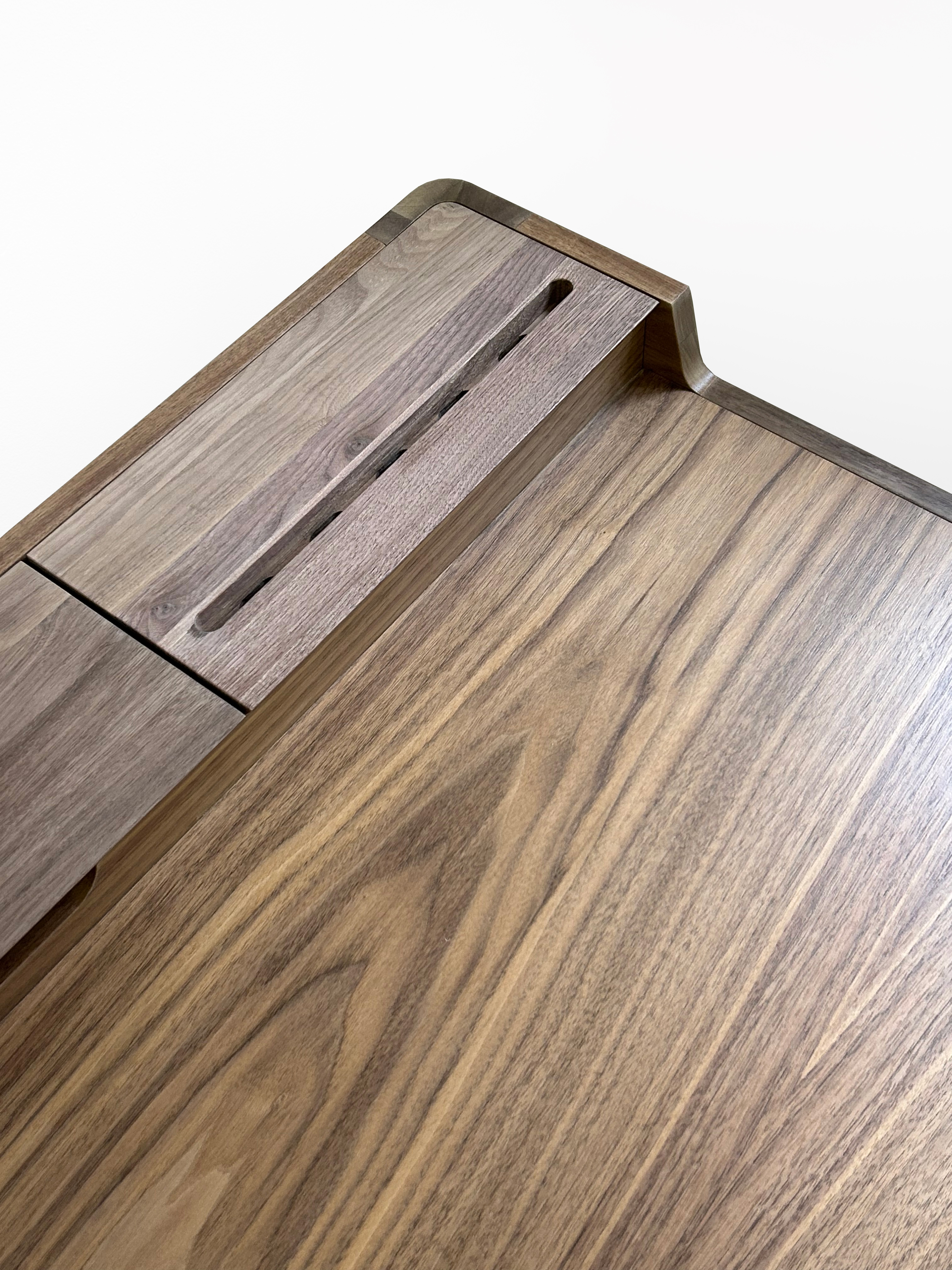 Письменный стол Supernova, без дефектов и царапин. Продается из магазина. Верхнюю крышку из массива американского ореха заменяли, поэтому она пока отличается по цвету. Со временем лак впитает ультрафиолет и сравняется с основным столом.
