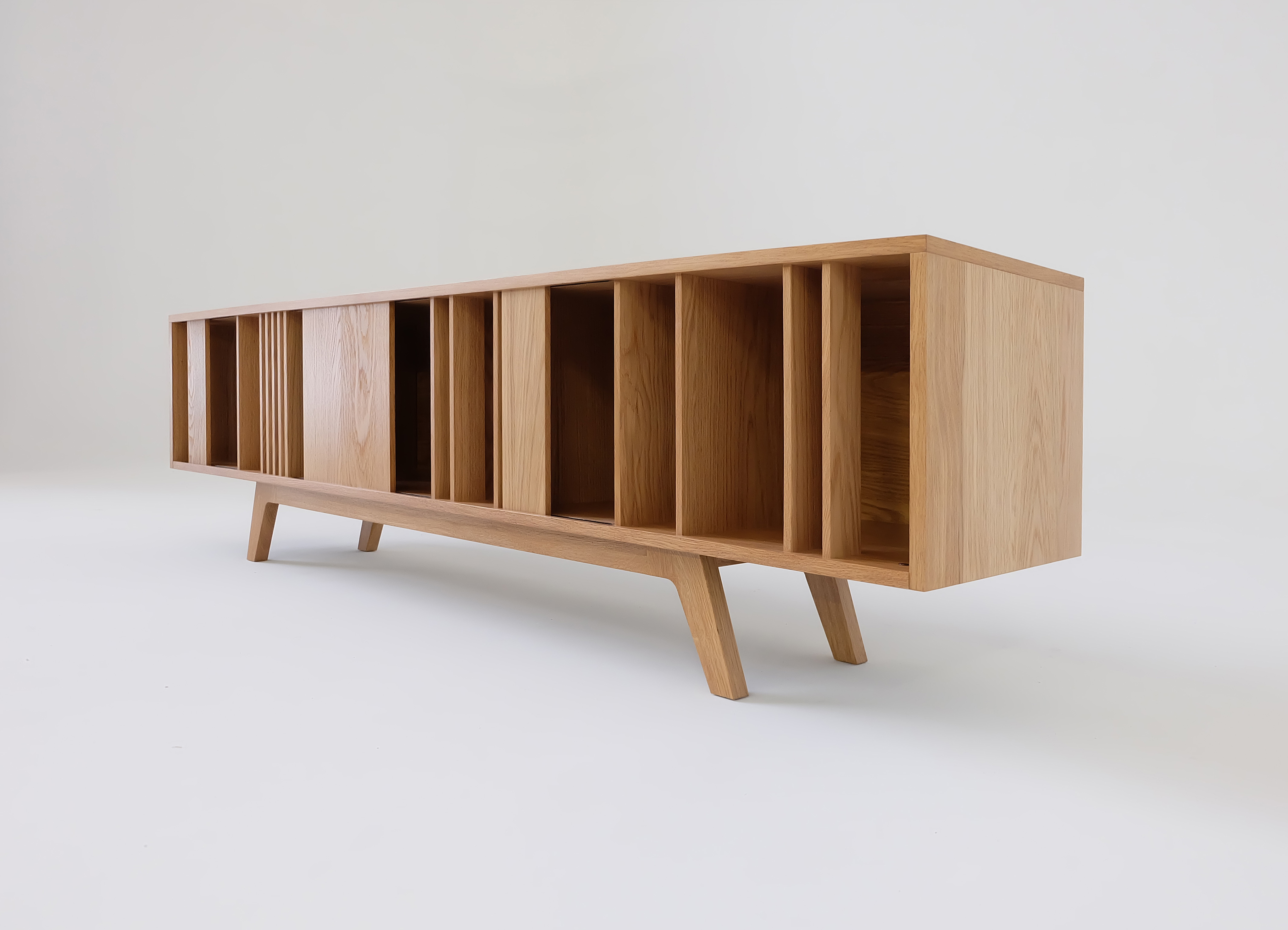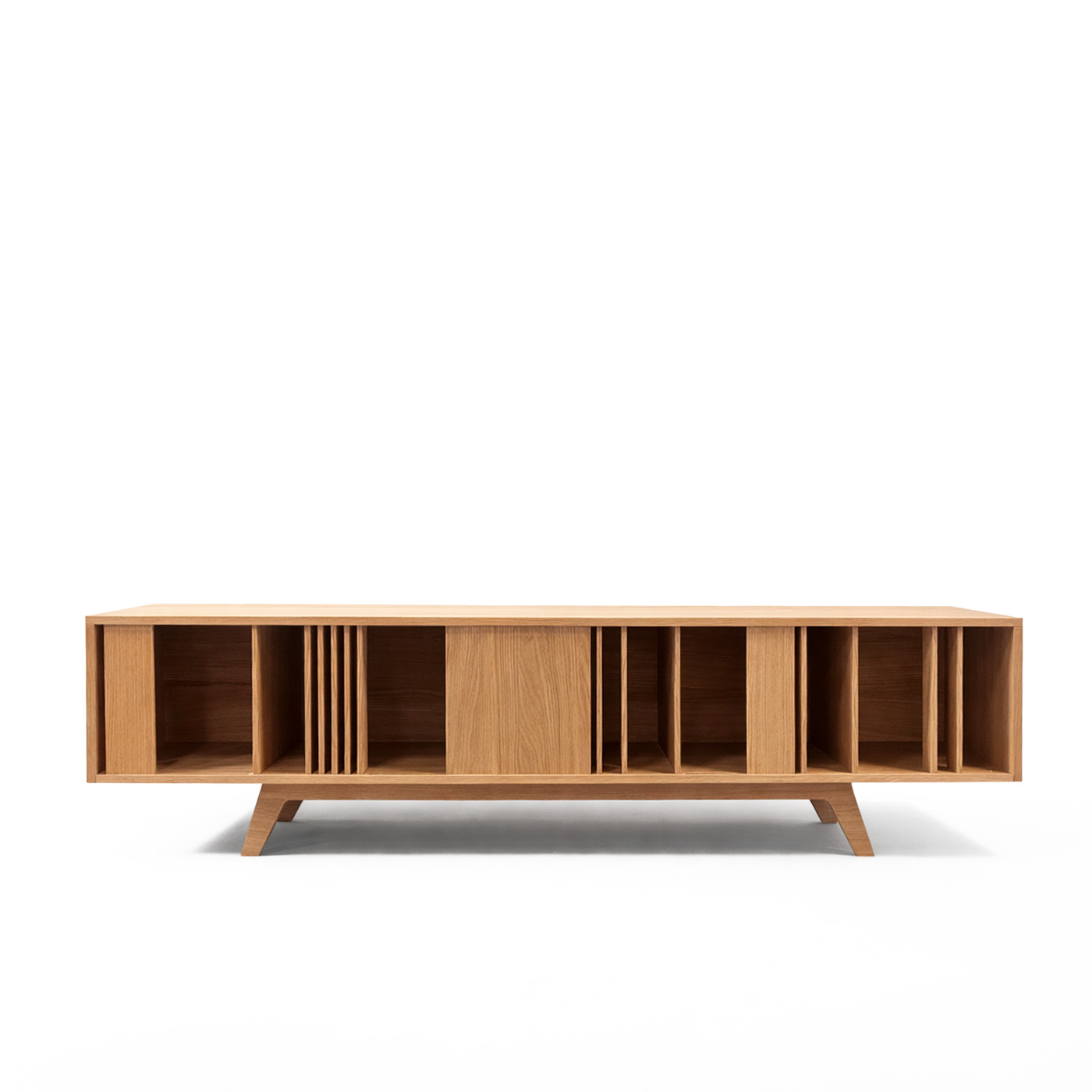 Шкаф Word — это функциональный книжный шкаф с удобными полками высотой 330 мм. Он также отлично подходит для хранения виниловых пластинок.