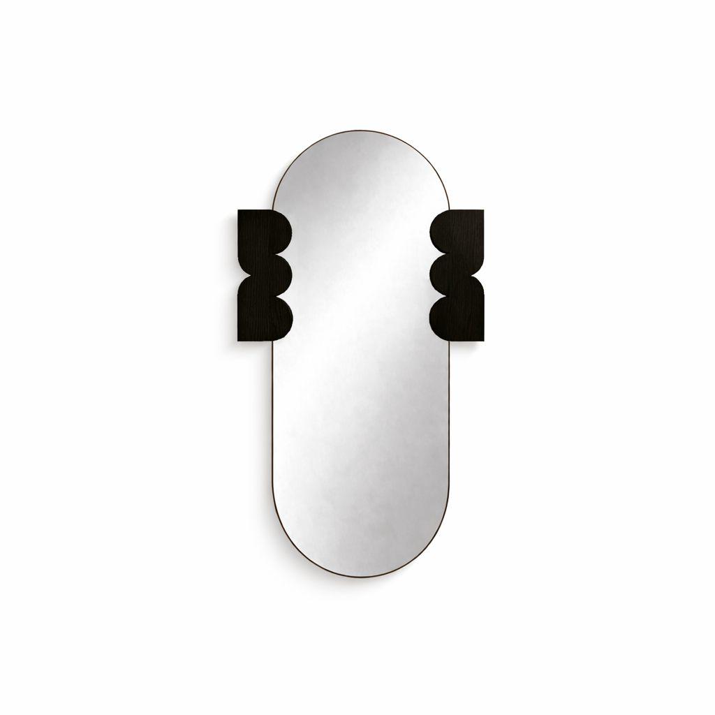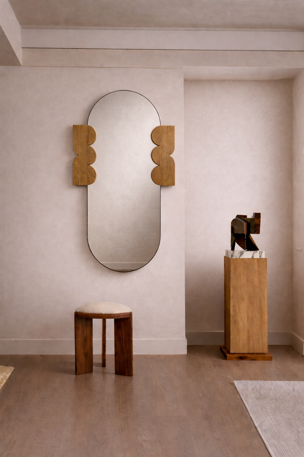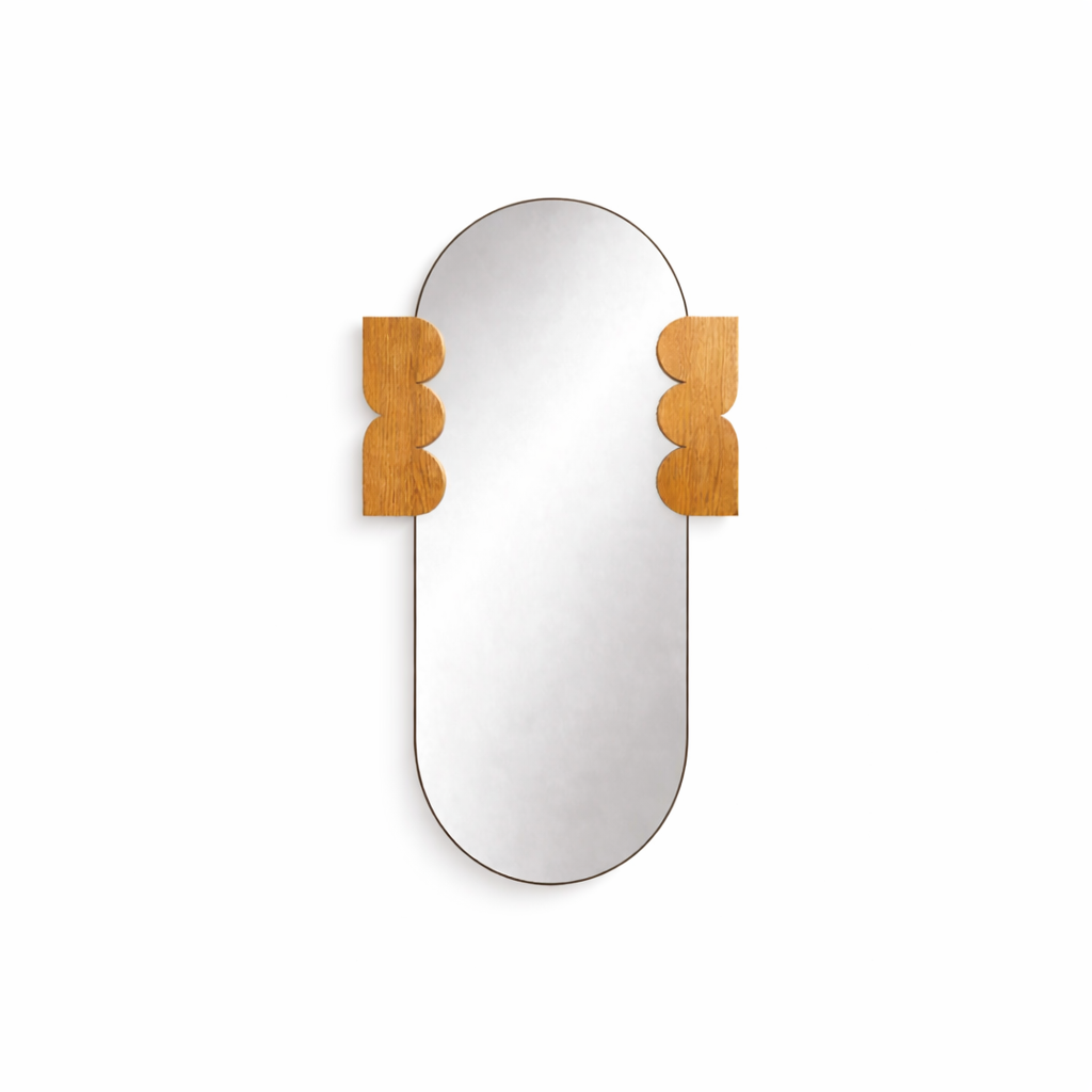 Зеркало MASK — стильная дизайнерская модель с овальной формой и боковыми элементами из дуба. Подходит для прихожей, спальни, гостиной и ванной, добавляя интерьеру глубину, свет и выразительный акцент.
