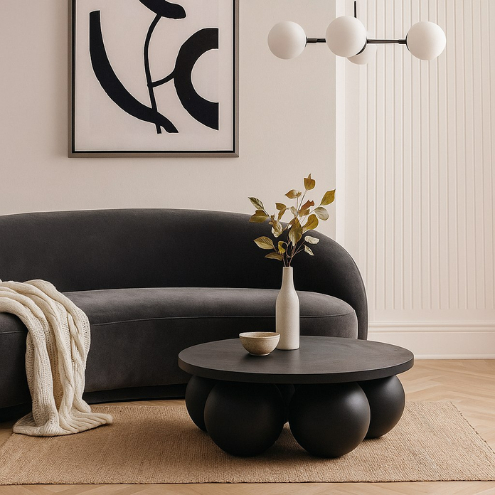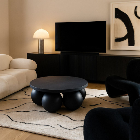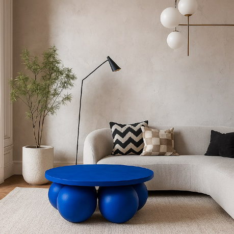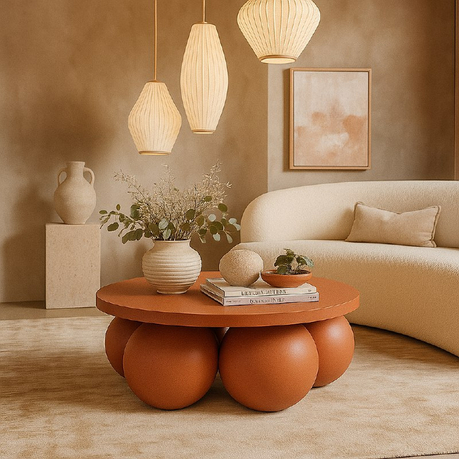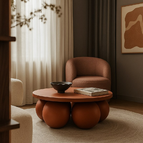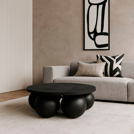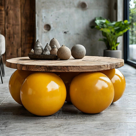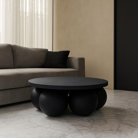 Журнальный стол Balloons выполнен из МДФ и имеет шесть массивных шаровидных опор. Его можно покрыть как декоративным, так и прочным микроцементным слоем. Это делает стол устойчивым к внешним воздействиям и позволяет использовать его даже на крытых верандах.