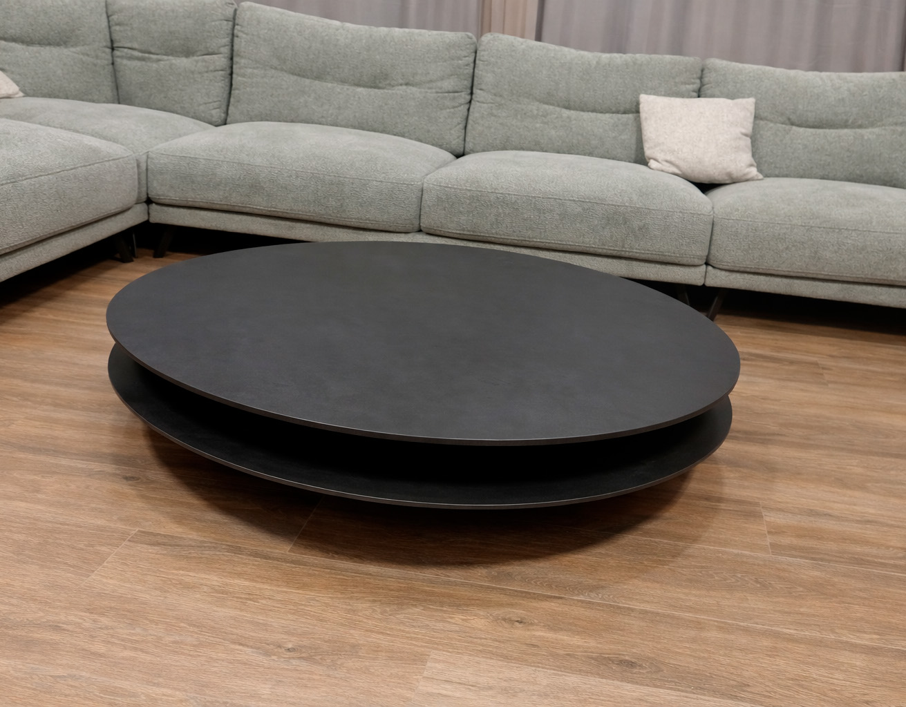 Круглый журнальный стол Plate. Доступен в двух вариантах: из МДФ с декоративным покрытием или из микс шпона и декоративного покрытия.